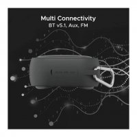This wireless speaker comes with multiple connectivity options. Choose from: AUX, FM & Bluetooth V5.1 to listen to your music. Not just this, but with a built-in microphone, get crystal clear conversations right from the speaker! |