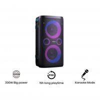 Built-in 300W all-round speakers greatly amplify your entertainment with powerful, booming bass.