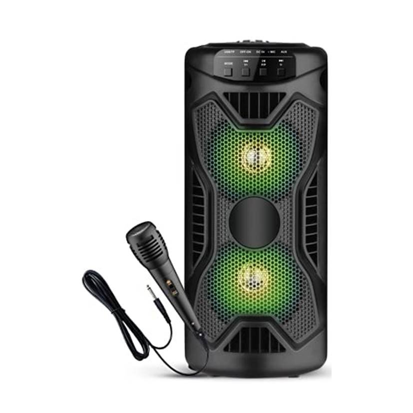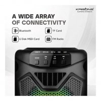 KRISONS capsule multimedia speaker equipped with FM Radio, USB and SD Card connectivity let you listen to your favorite music in a variety of ways. Moreover, it comes with a wired mic that guarantees professional-sounding Karaoke.