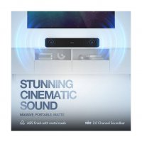 The soundbar boasts a robust and durable construction, featuring a sleek grey matte finish made of ABS plastic. Additionally, it includes grip strips at the |