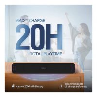 The power-saving chipset-equipped soundbar is loaded with a 2000mAh battery and 16W power output that delivers up to 20 hours of uninterrupted playtime.