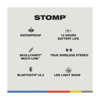 Plenty Loud For Any Crowd : Is your small gathering turning into a 5-alarm rager? With a simple press of a button, Multi-Link can connect up to 99 other Skullcandy Bluetooth speakers, so it can handle any size room and any number of people. Stomp also features an LED light bar & strobe light that syncs with the music to bring the beats to life. |