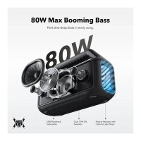 80W Max Booming Bass : Feel the power of the bass in every song thanks to a racetrack subwoofer for added depth and clarity. And with BassUpâ„¢ï¸ 2.0, you can tweak the bass EQ and increase the output from 60W to a staggering 80W max. |