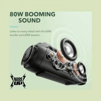 Epic Outdoor Sound: 80W booming sound is delivered by two 30W woofers and 10W tweeters, while real-time intensified bass can be heard with Soundcore's proprietary BassUp technology.