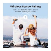 IPX7 Waterproof : Built to withstand various weather conditions, our wireless speaker is IPX7 waterproof, making it ideal for poolside parties or patio relaxation, whether it's scorching hot or pouring rain.