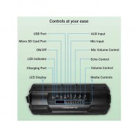Entertainment comes easy at a press of a button on the remote control that tags along with the speaker.