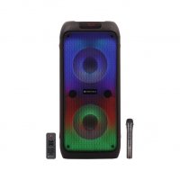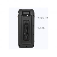 The speaker has an LED display and comes with controls for Volume, Treble, Bass, Mic Vol, Echo Control.