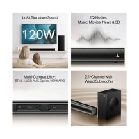 120W boAt Signature Sound : Bring home next-level entertainment with the boAt Aavante 2.1 1200 Soundbar. Its 120W bass-rich Signature Sound makes movies and series immersive for a theatre-like experience. |