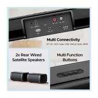 Multi-Channel Connectivity : The Bluetooth v5.0 connection as well as the integrated Aux, optical, HDMI ( ARC ), and USB ports of this soundbar lend easy usage. Regardless of your connectivity preference, you can indulge in engrossing audio without missing a beat. |
