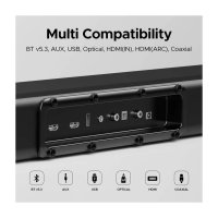 Multi-Compatibility : Stay effortlessly connected with Version 5.3 Bluetooth, AUX, USB, Optical, HDMI (IN), HDMI ( ARC ), and Coaxial connectivity options. Switch seamlessly between sources to suit your preferences.
