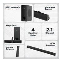 2.1 Channel : 4 x 2.25″ speakers with 160 Watt peak output Surround Sound, DSP Enabled.