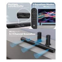 LED Display : Check the status of your soundbar through the LED display; Dynamic Mounting (Wall/Shelf): Place it in front of the TV or mount it on the wall, the choice is yours.Dolby Audio : Enjoy dramatic, high-quality surround sound from 5.1 separate audio channels with Dolby Audio; 525 Watt explosive sound output with 3D Surround Sound from 5 powerful 2" speakers.