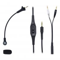 2.0 m ( 6.6' ) attached cable with gold-plated stereo mini-plug includes a simple volume control and locking microphone mute switch for one-hand operation. |