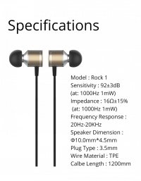 Rock 1 Earphone. Calbe Length : 1200 mm
