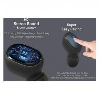 Sweat Proof Technology, Bass Boost+ True Wireless Ear Buds. The wireless Bluetooth earbuds deliver 18hrs listening time and 5hrs talk time on single charge, total 20hr playtime.