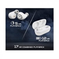 17 Hours of Combined Playback Time ( 5 Hours on Earbuds & 12 Hours on Charging Case ).