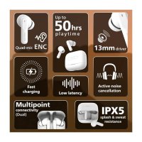 Active Noise Cancelling : Experience up to 32dB noise cancellation for immersive sound, with Quad Mic Environmental Noise Cancellation for crystal-clear calls.