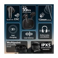 Active Noise Cancelling : Experience up to 32dB noise cancellation for immersive sound, with Quad Mic Environmental Noise Cancellation for crystal-clear calls.