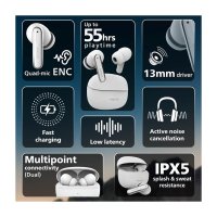 Active Noise Cancelling : Experience up to 32dB noise cancellation for immersive sound, with Quad Mic Environmental Noise Cancellation for crystal-clear calls.
