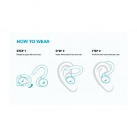 Hear your surroundings and hear what people are saying to you, without removing your earbuds. Activate via the button on the earbud.