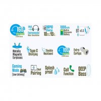 The WIreless neckband earphone comes packed with 1000mAh battery with backup of 160h* at 50% volume and 100h* of playback time at 100% volume. Giving you freedom to enjoy your music without worries of running out of battery. It also comes with Rapid charging feature, just charge for 10mins and to get 15h* of use.